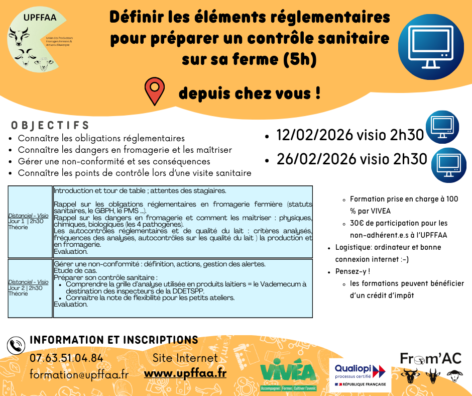 Elles sont réalisées pour répondre à la demande des producteurs fromagers, en priorité réservées aux adhérents, mais ouvertes à tous et seront organisées en Haute-Loire, Loire ou dans le Puy de Dôme.